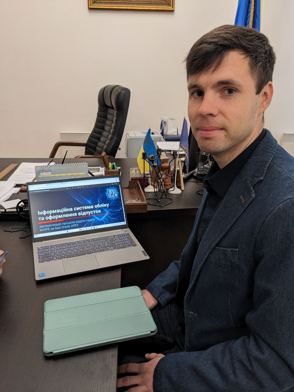 Oleksandr Stepin, an engineer Centre for Information Systems and Technologies, presented a new programme for automating HR department processes to the university’s management, including Rector Ihor Ruban. The development is based on the powerful low-code platform ORACLE APEX.